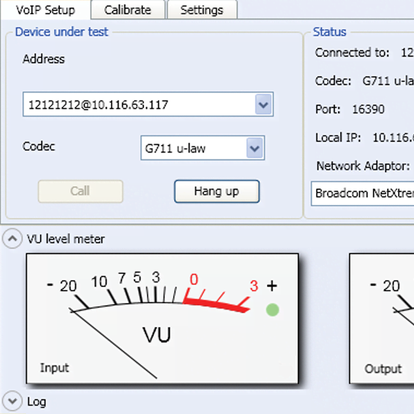 Software for simulating a VoIP network phone and handling analogue input and output via a high-quality sound card, for speech performance evaluation.