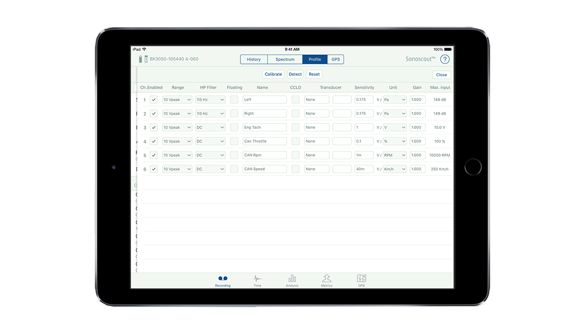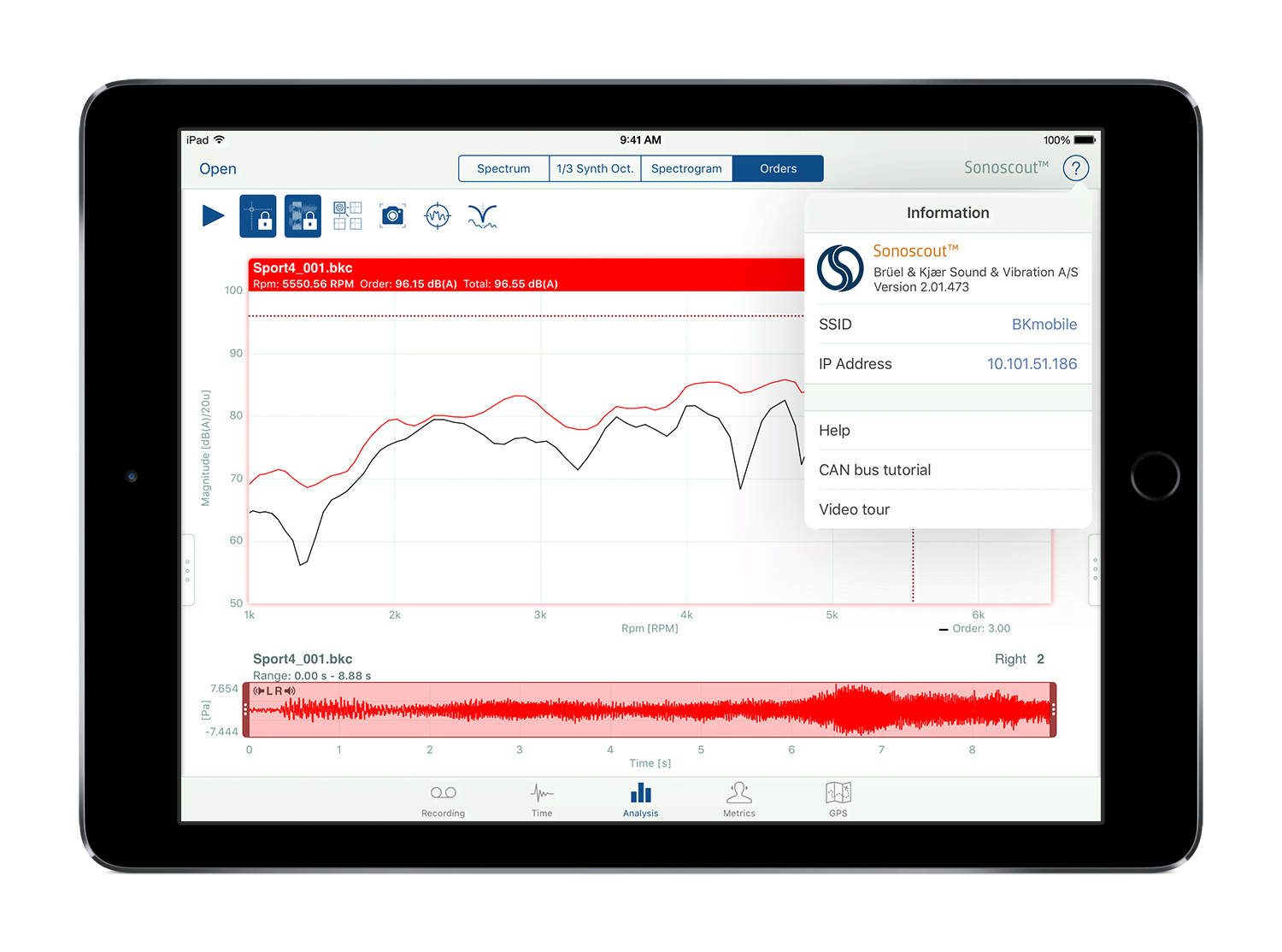 Angebot anfordernSonoscout ist ein System, das mithilfe einer App auf einem iPad® eine drahtlose Datenerfassungseinheit steuert. An das robuste Frontend können bis zu 12 Sensoren angeschlossen werden, beispielsweise ein binaurales Headset für Aufzeichnungen direkt an den Fahrerohrpositionen im Fahrzeug oder zwei unabhängige CAN-Buseingänge und bis zu acht Sensoren (abhängig von der Frontend-Konfiguration).
