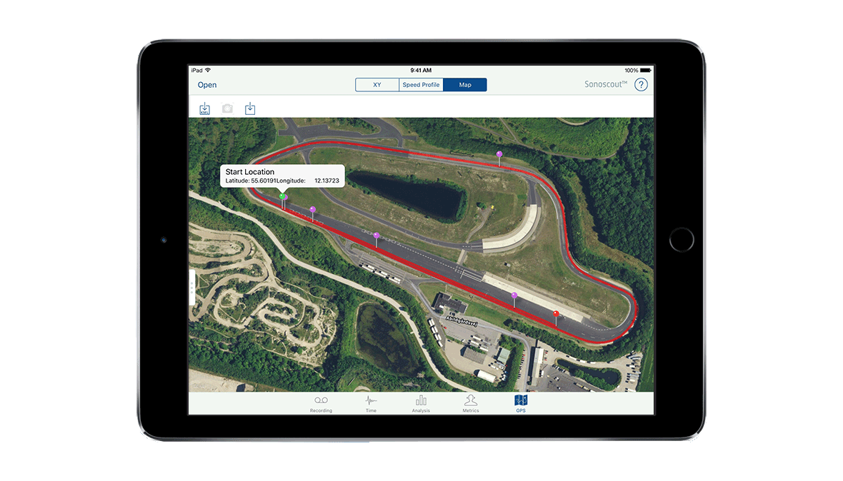 Während der Messung können Sie Screenshots mit den angezeigten Daten durch Antippen einer einzigen Schaltfläche speichern. Durch Antippen des Bildschirms können auch wichtige Ereignisse und Zeiträume markiert werden. Sonoscout markiert die Strecke automatisch mittels GPS und zeigt markierte Ereignisse später in Google Earth™ an, inklusive der jeweiligen Position. Sie können die Berichterstellung direkt auf dem iPad beginnen und dafür beliebige Apps von Microsoft Office® nutzen.