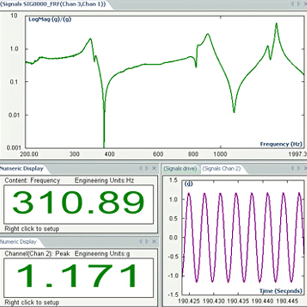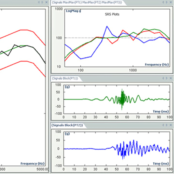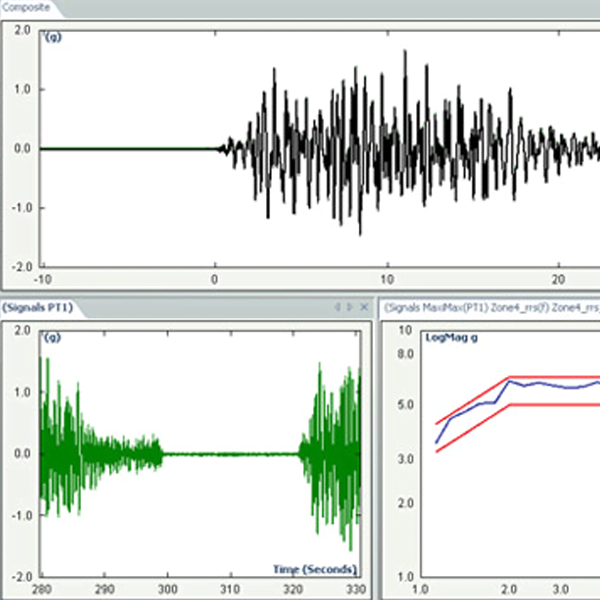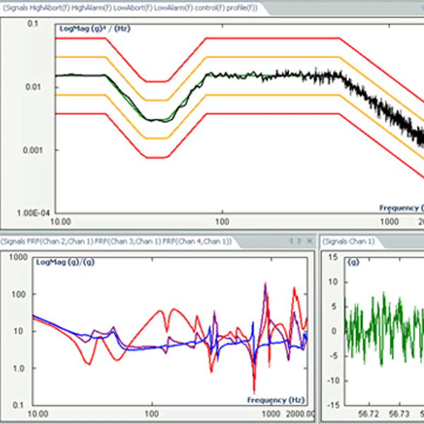 Vibration test profiles works in two parts: As a user interface on the host computer, and as the profile that conditions and executes tests on the controller driving your vibration shaker. The software interface is simple to use, but enables complex vibration control setup or standardlized data analysis for random, swept sine, resonance dwell, classical shock, random on random, sine on random, shock SRS with field data replication simulating real-world operating conditions, as defined by MIL-STD, DIN, ISO, and IEC standards.