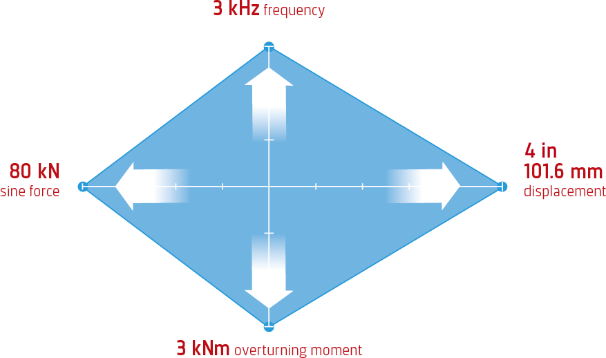 - A versatile and capable mix of force, displacement, high frequency and high overturning moment