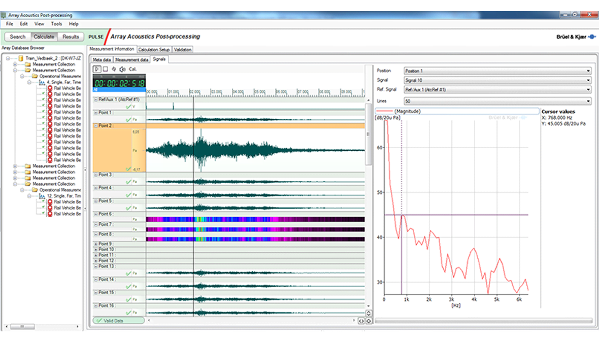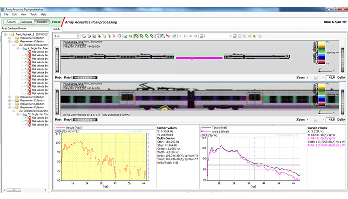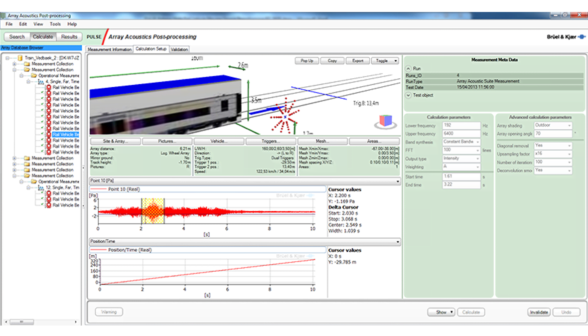 Software for noise source location on moving rail vehicles in combination with a portable microphone array.
