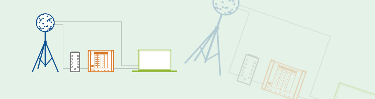 Los sistemas de beamforming esférico se suministran en forma de proyectos adaptados a las especificaciones de cada cliente. Un sistema típico para medir ruido en el interior de un vehículo consiste en el software de medición y posprocesamiento PULSE para beamforming esférico, hardware de adquisición LAN‐XI (bastidor, módulos y paneles), un array esférico de 36 o 50 canales y accesorios (por ejemplo, un dispositivo para el asiento del coche, un pistófono, una caja divisora, cables, etc.).