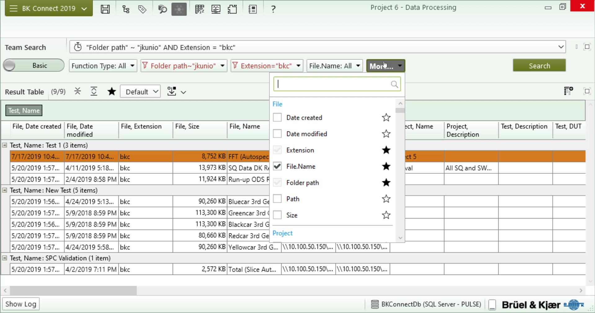 Les profils disposant d’un accès en lecture/écriture au Team Folder peuvent rechercher des données dans BK Connect selon n’importe quel attribut de données – et plus important encore, selon des métadonnées définies par l’utilisateur. Une fois retrouvées, les données peuvent être importées dans le projet local pour y être traitées, comparées ou pour la création de rapports. Team Server ouvre de nouvelles perspectives pour un travail plus collaboratif et pour des méthodes de résolution de problèmes plus efficaces.