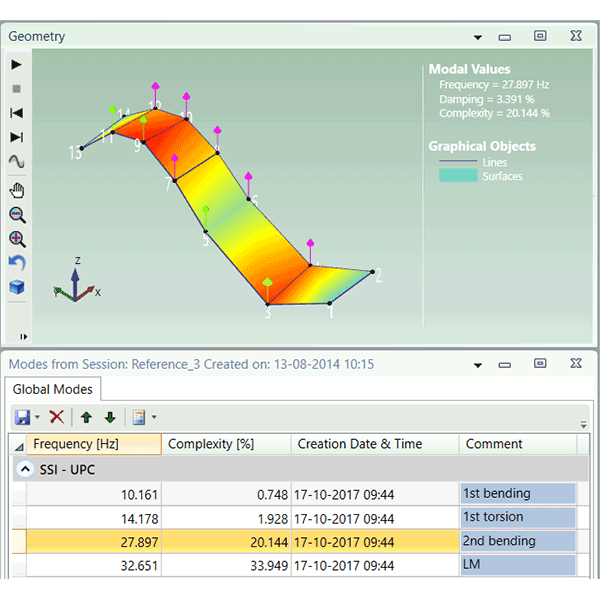 Logiciel de post-traitement dédié à l’analyse modale de structures en conditions réelles de fonctionnement, ou lorsqu’il est difficile ou impossible d’exciter artificiellement la structure.