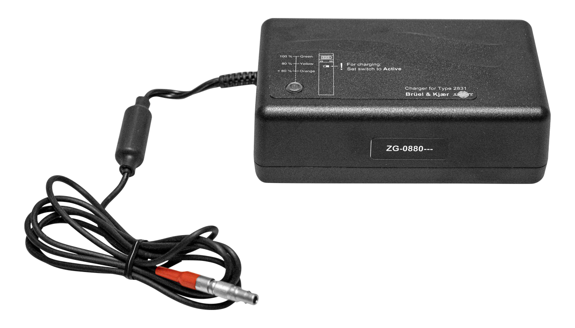 Used to charge the battery module LAN-XI Type 2831. Charges in three hours. Input range: 100 – 240 V AC 50 – 60Hz.