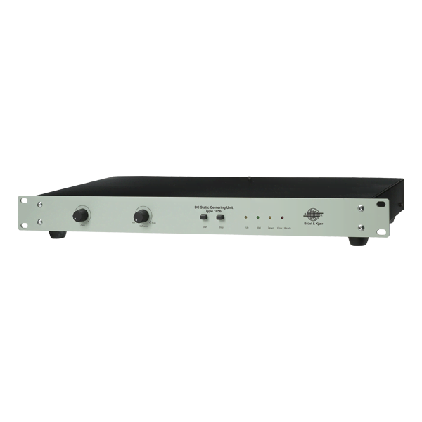 L’unité de centrage statique Type 1056 dispose d’un potentiomètre qui fournit un réglage en continu de la position de la bobine afin de garantir la course ou déplacement crête à crête maximum. L’appareil détecte la position exacte de la bobine à l’aide de signaux envoyés par un capteur optique intégré dans nos excitateurs modaux. Le capteur surveille la position exacte de la bobine en balayant la surface d’un bras spécialement conçu qui s’étend de l’armature de l’excitateur pour s’assurer qu’il est à la position zéro (± 3 mm). Un affichage à LED sur le panneau frontal indique la position de la bobine et vous avertit lorsqu’il y a une course excessive – lorsqu'elle est au-dessus ou en dessous de la position zéro. Un autre potentiomètre permet le préréglage électronique de la rigidité de la suspension de l’armature.