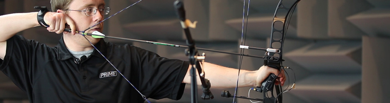 “We accomplished the testing for G5 Outdoors in one day,” says Andrea Frey, Project Engineer for Brüel & Kjær North America, “but it was a long day, about 13 hours. It could have been split into two days, but G5 is located 90 minutes from the ARC, and we didn’t want G5 driving two days in a row. The work itself was not complicated. We did the testing in one of the ARC’s hemi-anechoic chambers, with the target at one end and the shooter at the other. G5 brought several bows to the ARC, with the goal of capturing the vibration of their bows and a few competitors’ bows, so we instrumented each bow with triaxes [triaxial accelerometers] at several locations.