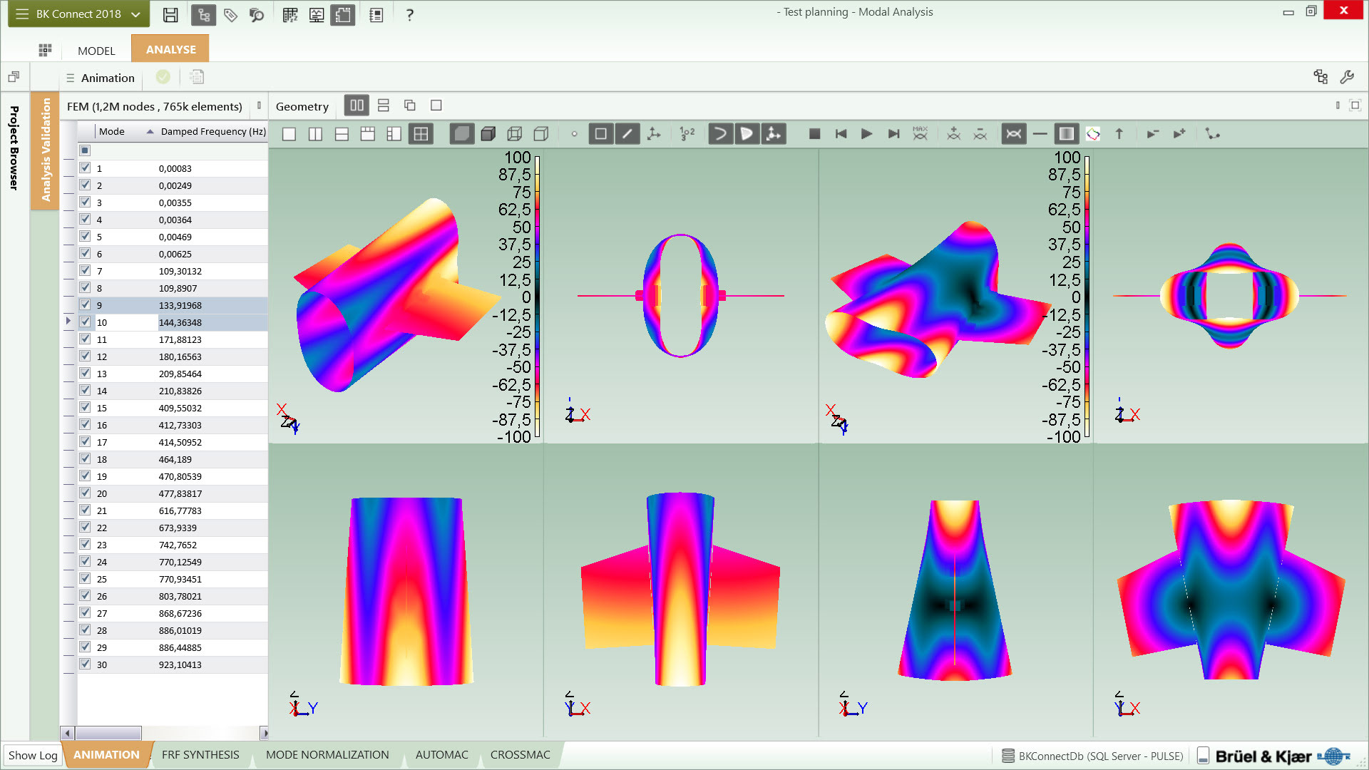 BK Connect Geometry is a powerful tool for test geometry creation, geometry-guided structural setup and measurements, testing and finite element analysis (FEA) result animation. Includes powerful features for test planning, benefiting both test engineers and analysts.