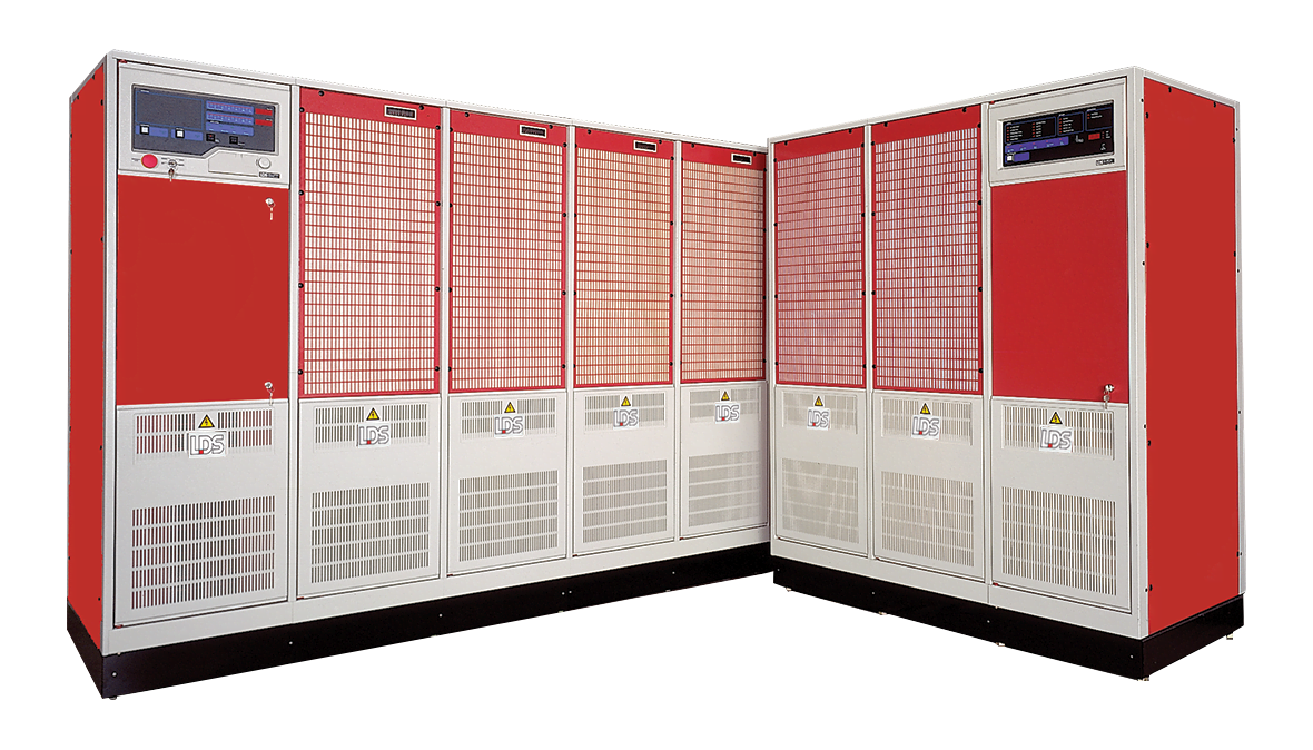 A range of digitally controlled, switch-mode amplifiers used to drive electrodynamic shakers with force ratings of at least 89 kN (20,000 lbf) for vibration testing and other applications. Available with outputs from 70 to 280 kVA.