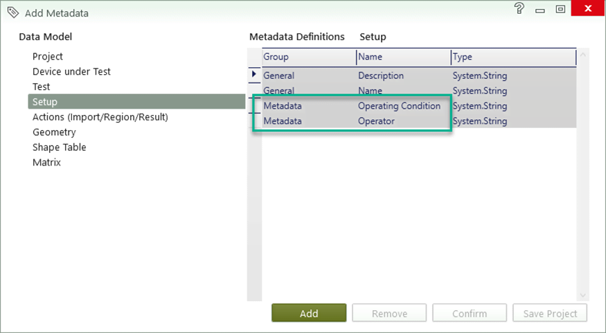 How to save properties and display favouritesMetadata can be attributes such as which test cell was used, who took the data, what was the speed of the motor, what was the temperature of the environment and so on. These fields are user definable.
