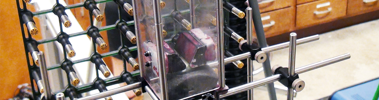 Recently, our voice lab used near-field acoustic holography (NAH) to study the sources of sound in the vocal folds and the articulators. With the help of Tony Frazer and Dave Bush from Brüel & Kjær, we set up an experiment that simulated sound propagating from the vocal folds to the articulators. We then used NAH to identify how the modes of the acoustics changed as we varied the parameters in each experiment. The images showing the set-up give an example of the sound modes that we observed in the model. Our findings were well received at the 2014 International Conference on Voice Physiology and Biomechanics in Salt Lake City, Utah.