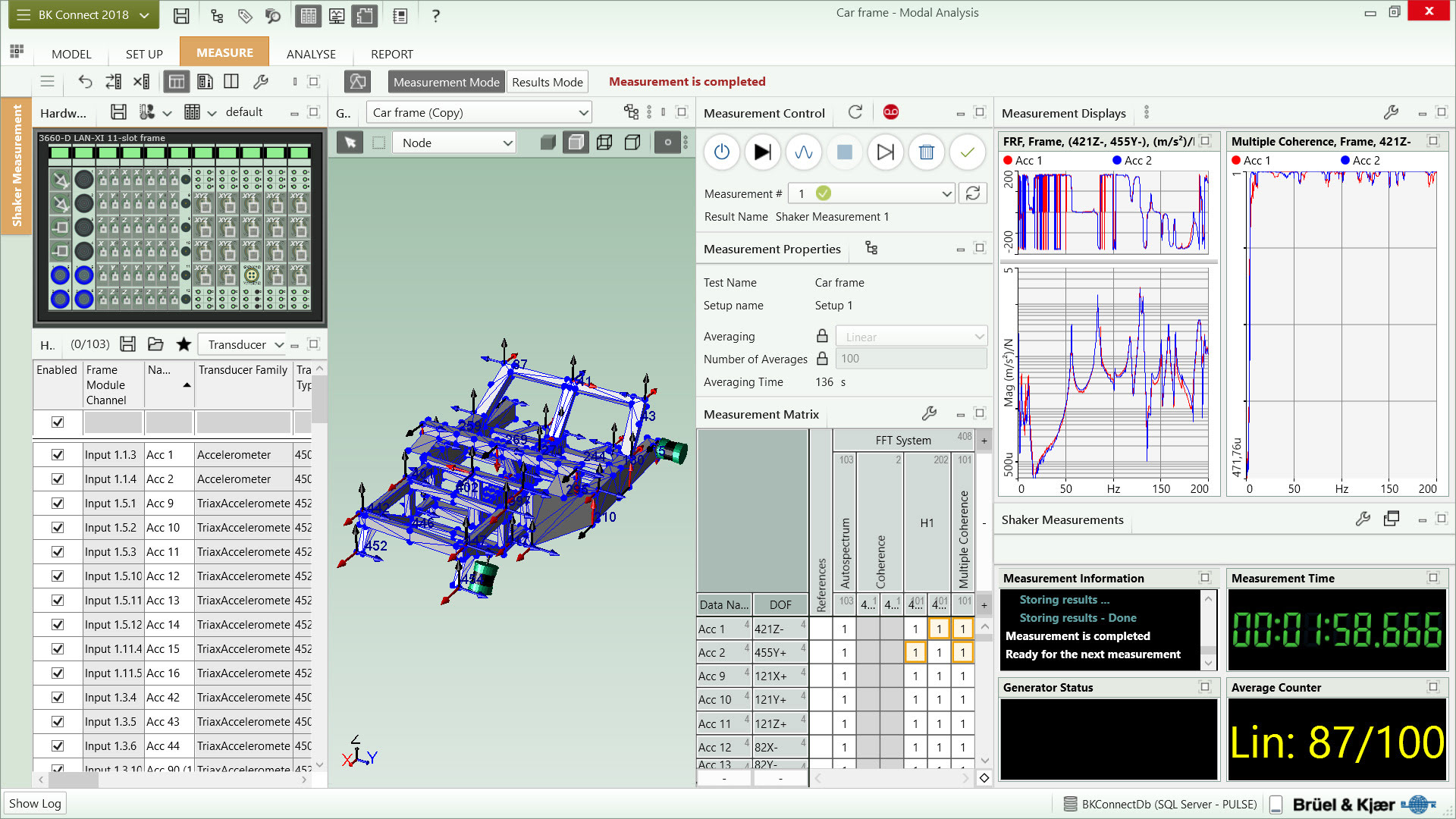 BK Connect Structural Measurements - 해머와 셰이커는 BK Connect Modal Analysis, Type 8420 및 BK Connect Advanced Modal Analysis, 8420-A 과 페어링해 사용할 수 있습니다. 사용자 편의에 맞게 설계된 인터페이스를 활용해 손쉽게 모달 측정과 분석이 가능합니다. BK Connect Correlation Analysis, 8421 과 구조적 측정을 통합하여 테스트용 FEA 모델과 연계할 수 있습니다.