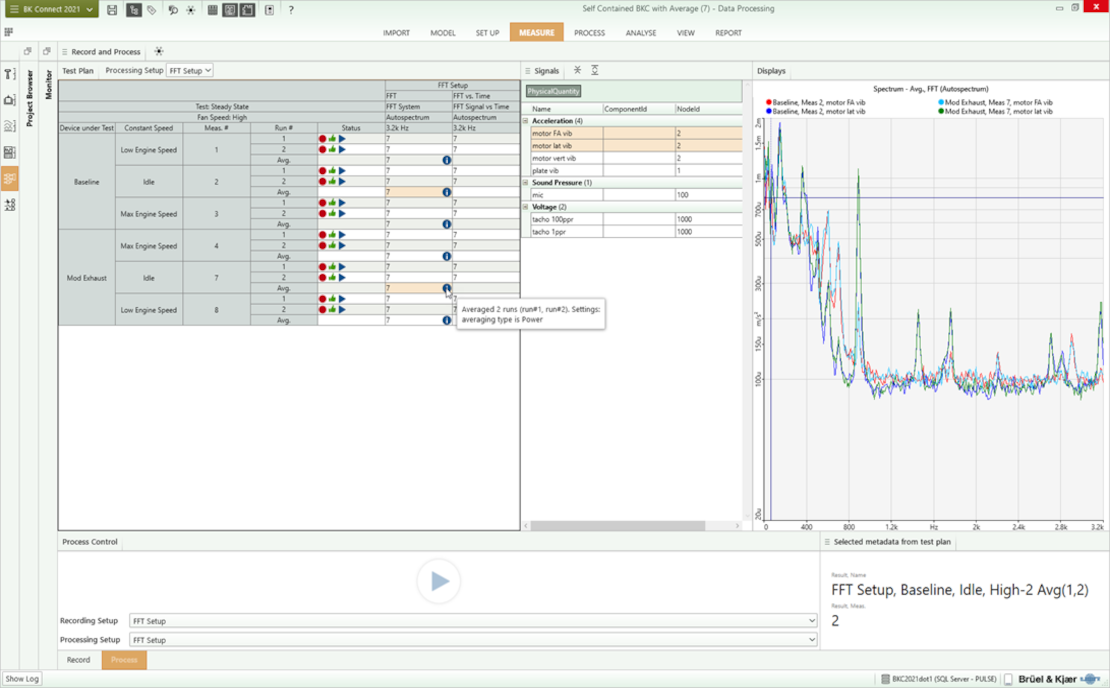 Crie cadeias de processo para os domínios de tempo e de frequência, que podem ser usadas pelo especialista ou operador usando o BK Connect Data Processing Tipo 8403 - Cadeia de processo para análise gráfica