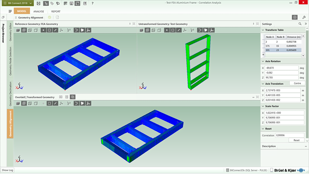 Solicite uma cotaçãoEsta aplicação permite que você realize uma comparação visual e numérica completa de dois modelos modais, tipicamente entre um modelo de teste e um outro de elementos finitos (FE). O processo completo do fluxo de trabalho é intuitivo e, ao mesmo tempo, flexível, orientando-lhe de forma eficiente através do alinhamento de geometria, mapeamento de graus de liberdade (DOF), comparação, comparação de vetores, sincronização de modo e criação de relatórios. Além disso, as ferramentas de planejamento e validação de testes lhe ajudam a conceber as melhores condições de teste e a avaliar diferentes estratégias de modelagem.