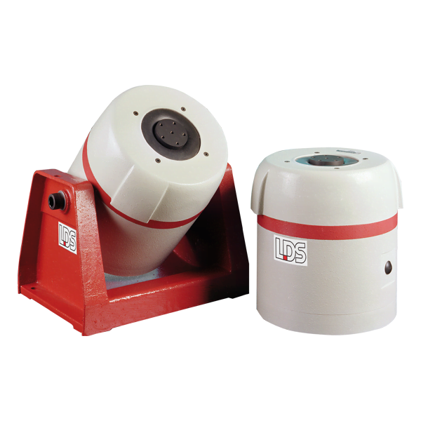 Um ímã permanente, Shaker eletrodinâmico para testes de vibração de componentes eletrônicos e pequenos conjuntos, análises modais e estruturais e testes de fadiga e ressonância. Forças máximas até 311 N (70 lbf).