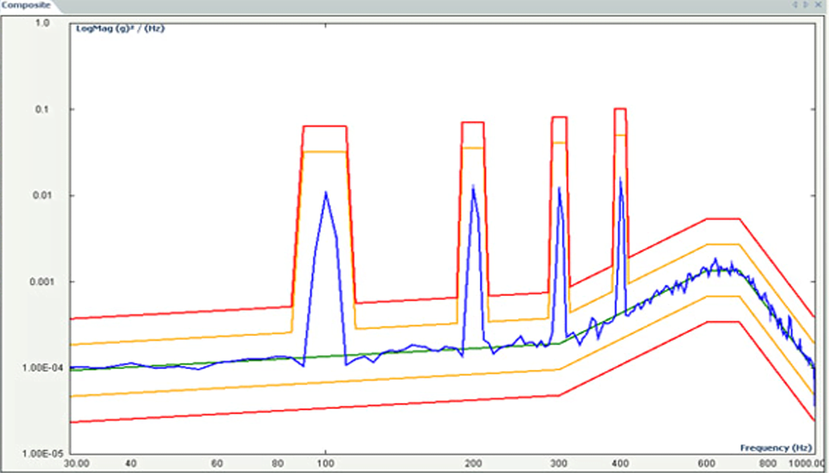 正弦加随机(SoR)控制将宽带随机激励和正弦波形或‘音调’相结合,对复杂的振动环境进行模拟。一般而言,两种信号类型同时出现,音调可以出现在固定频率或者在频率范围中扫过。